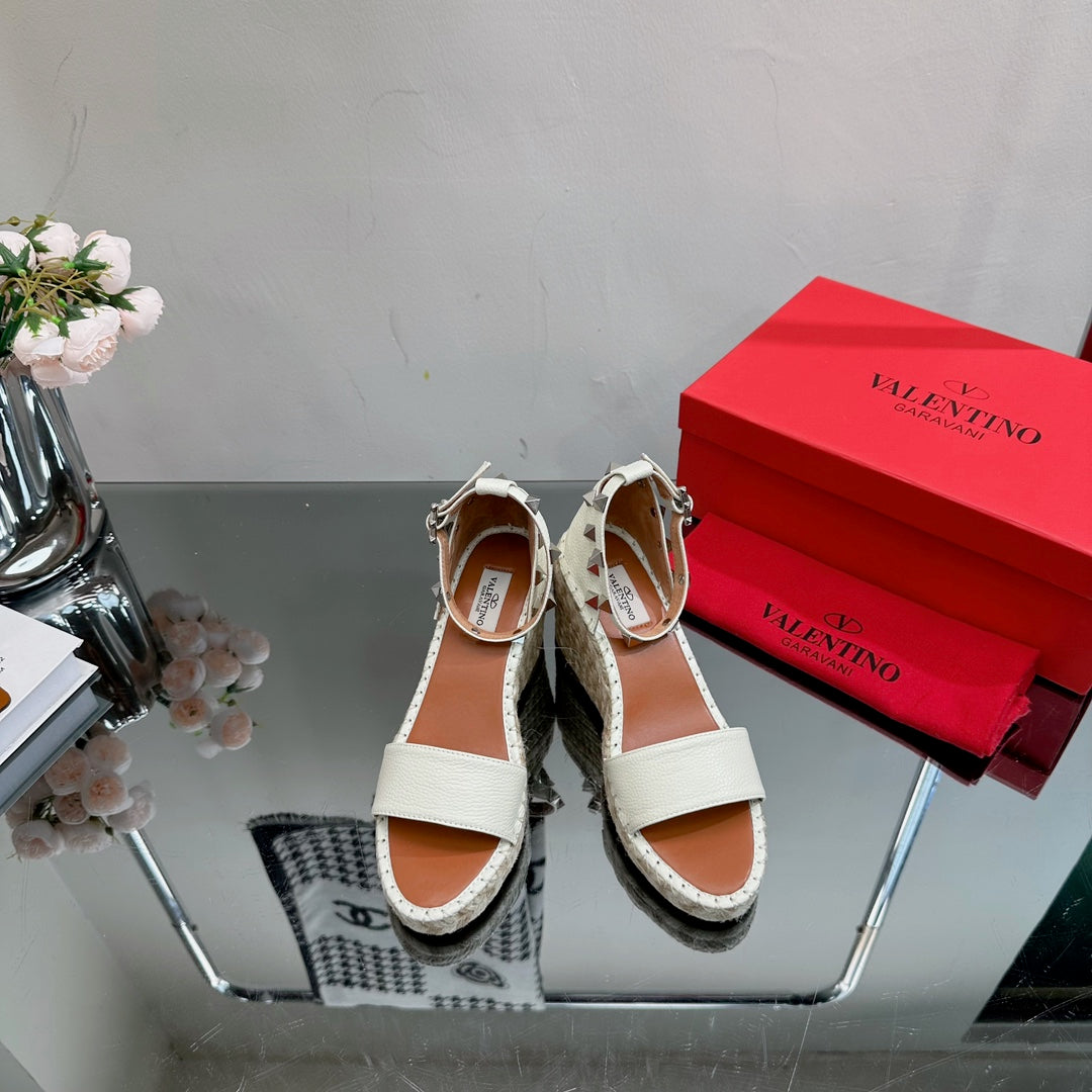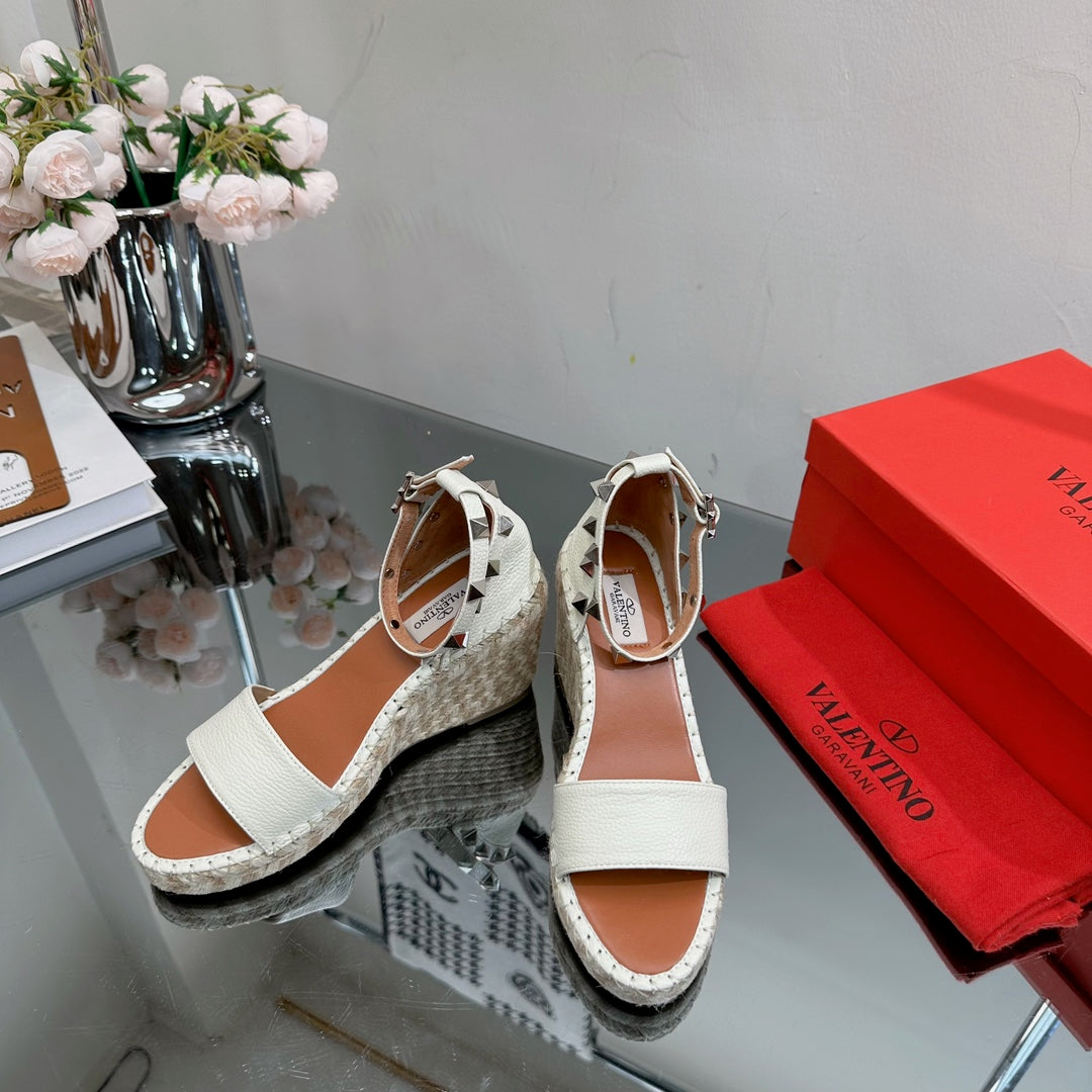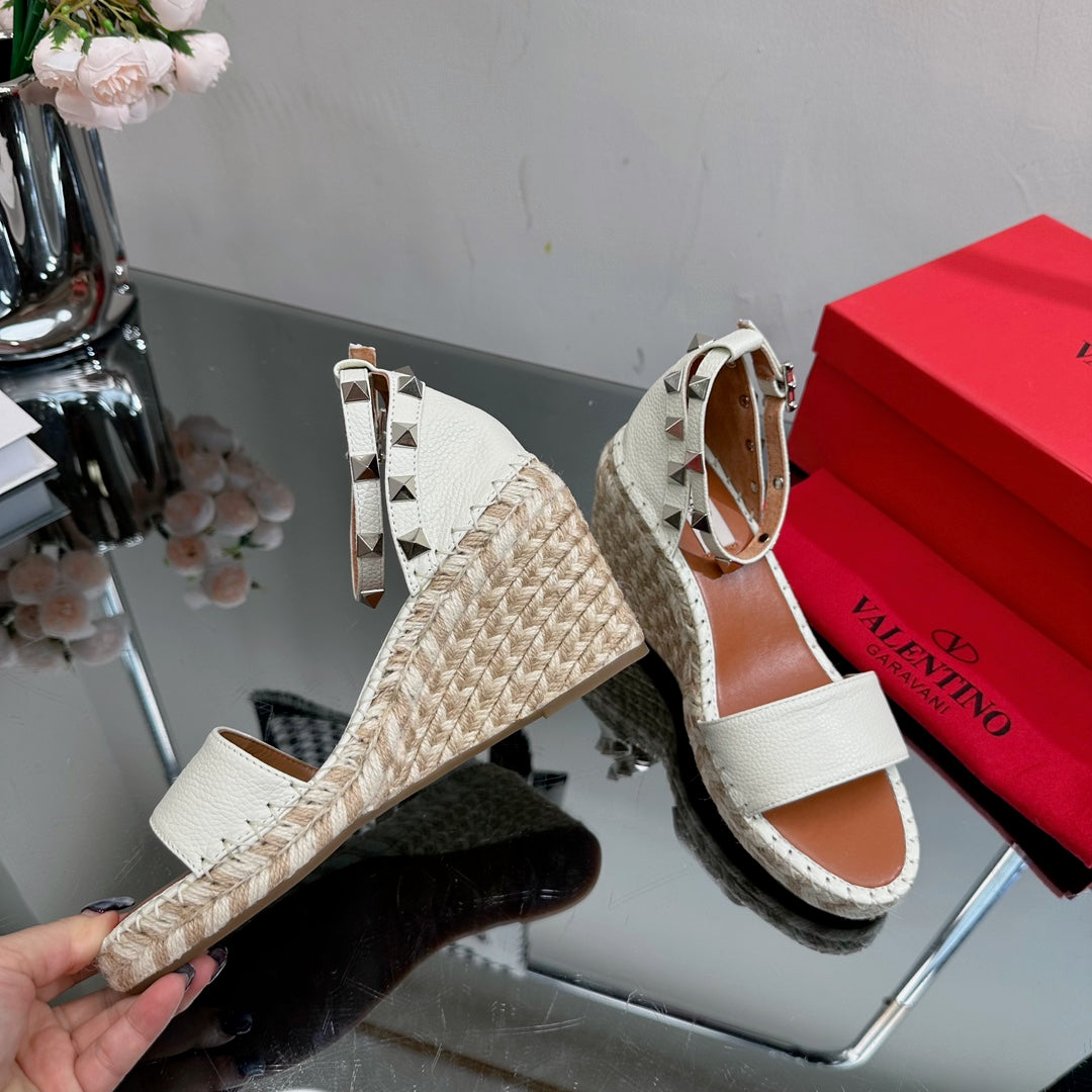 ROCKSTUD WEDGE 85 MM IN WHITE CALFSKIN