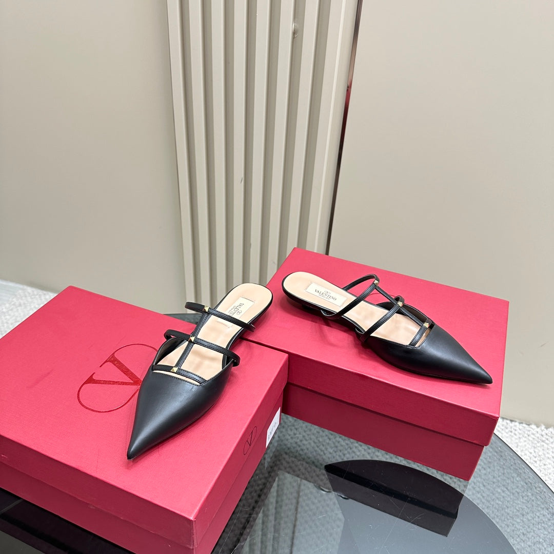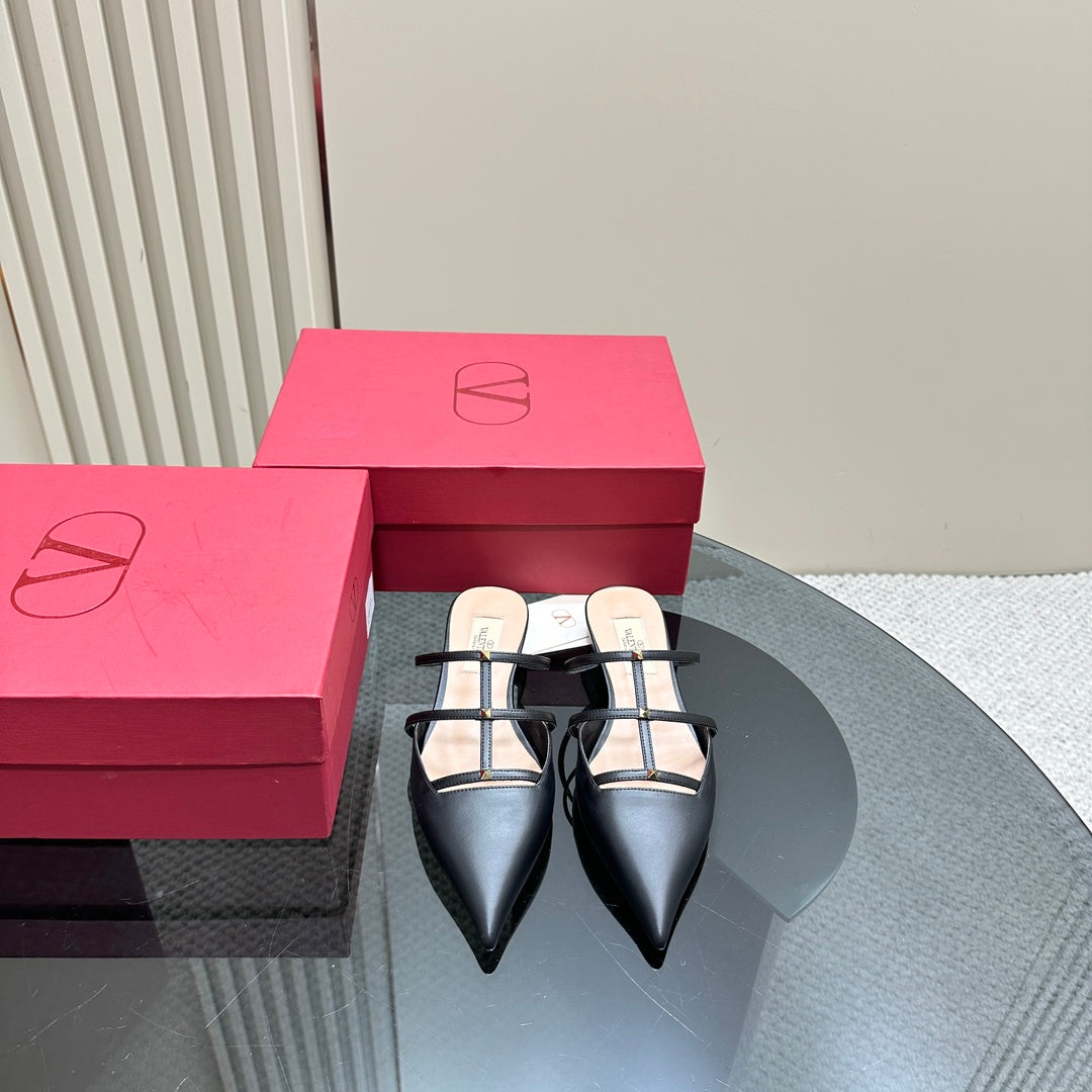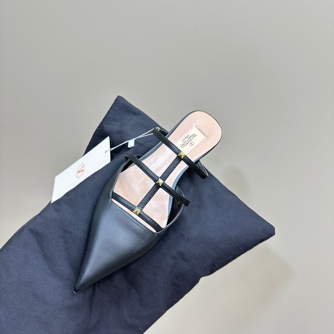 ROCKSTUD WISPY BLACK CALFSKIN MULE 20MM