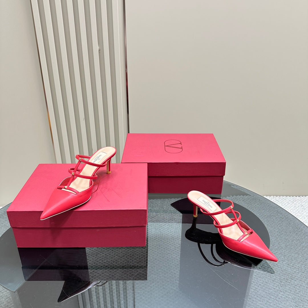 ROCKSTUD WISPY CHERRY RED CALFSKIN MULE 60MM