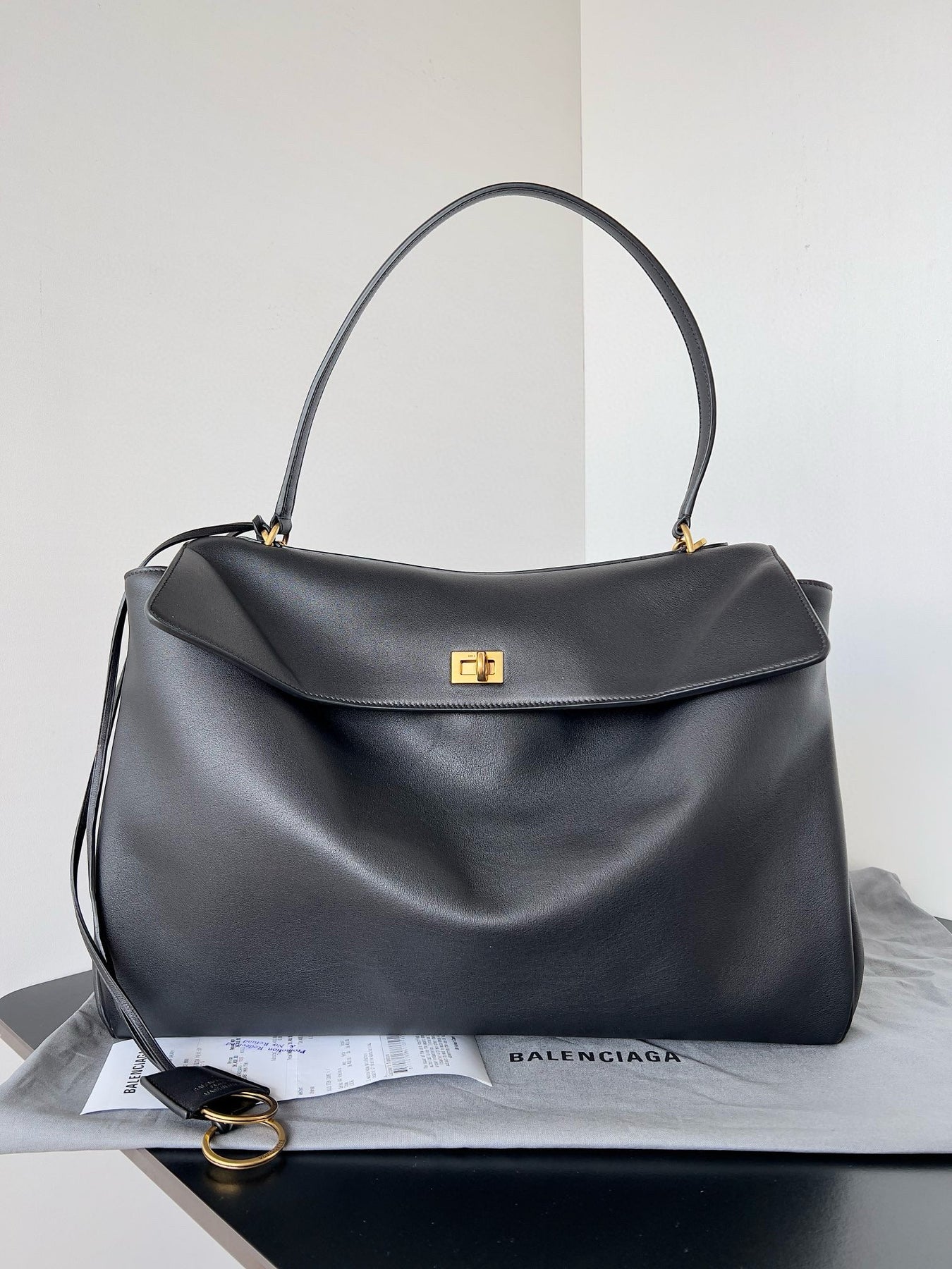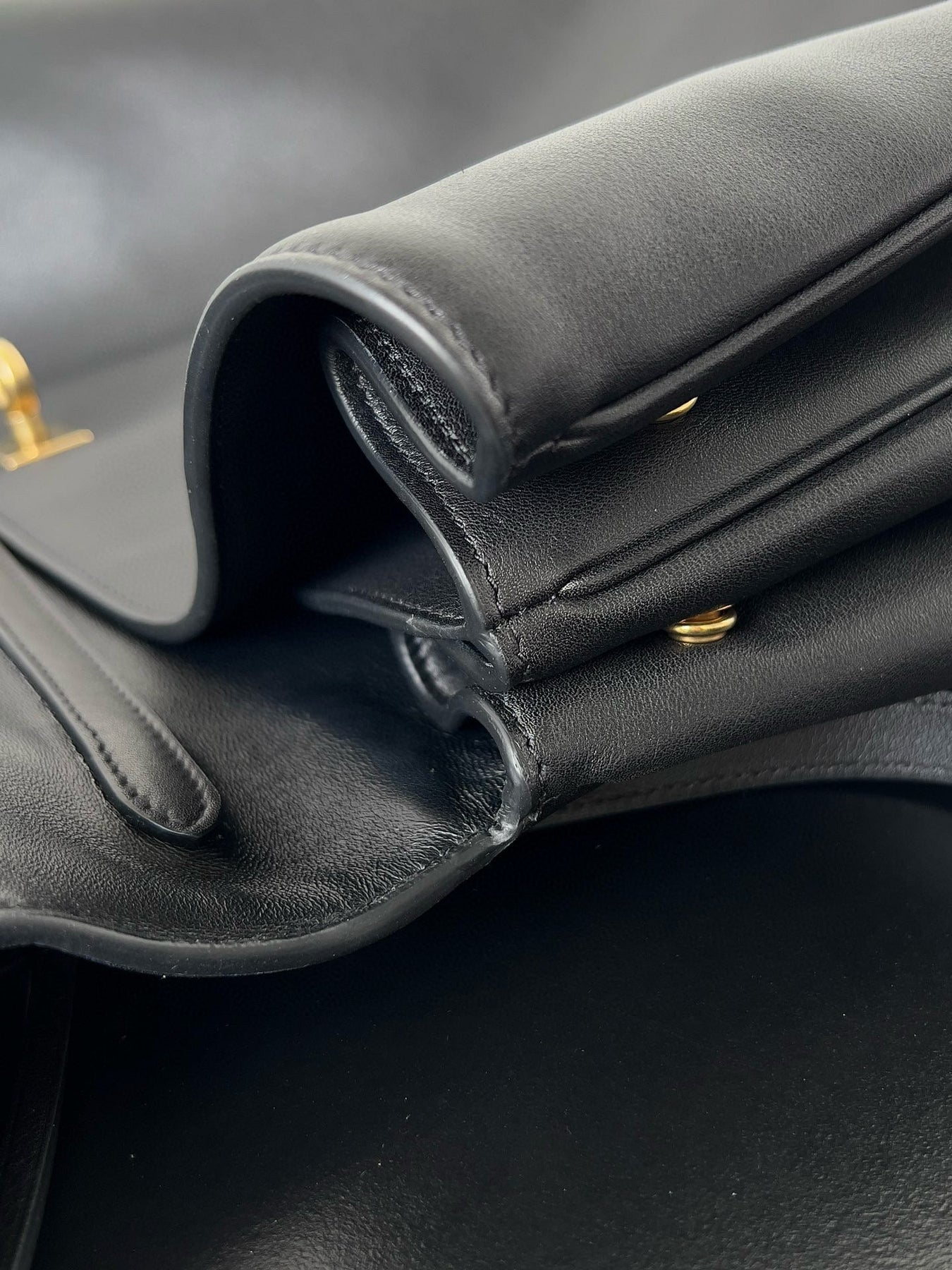 RODEO MEDIUM BAG 35 IN BLACK SMOOTH CALFSKIN GOLD HARDWARE
