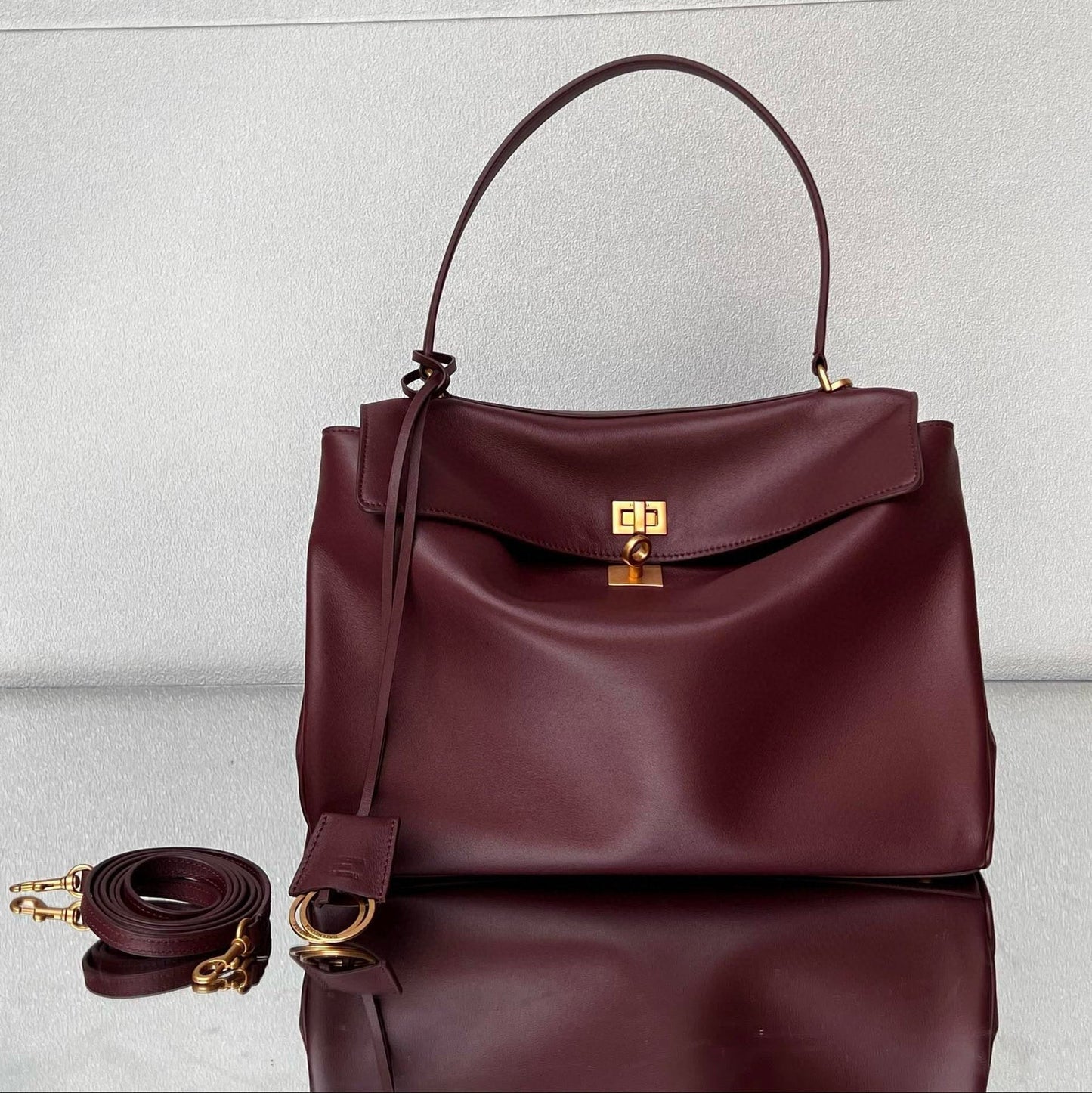 RODEO MEDIUM BAG 35 IN BURGUNDY SMOOTH CALFSKIN GOLD HARDWARE