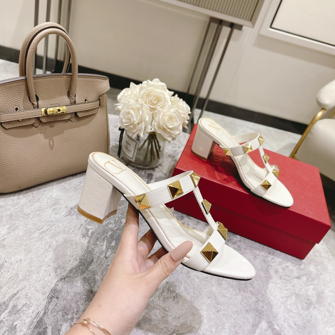 ROMAN STUD WHITE CALFSKIN SLIDE SANDAL 60 MM