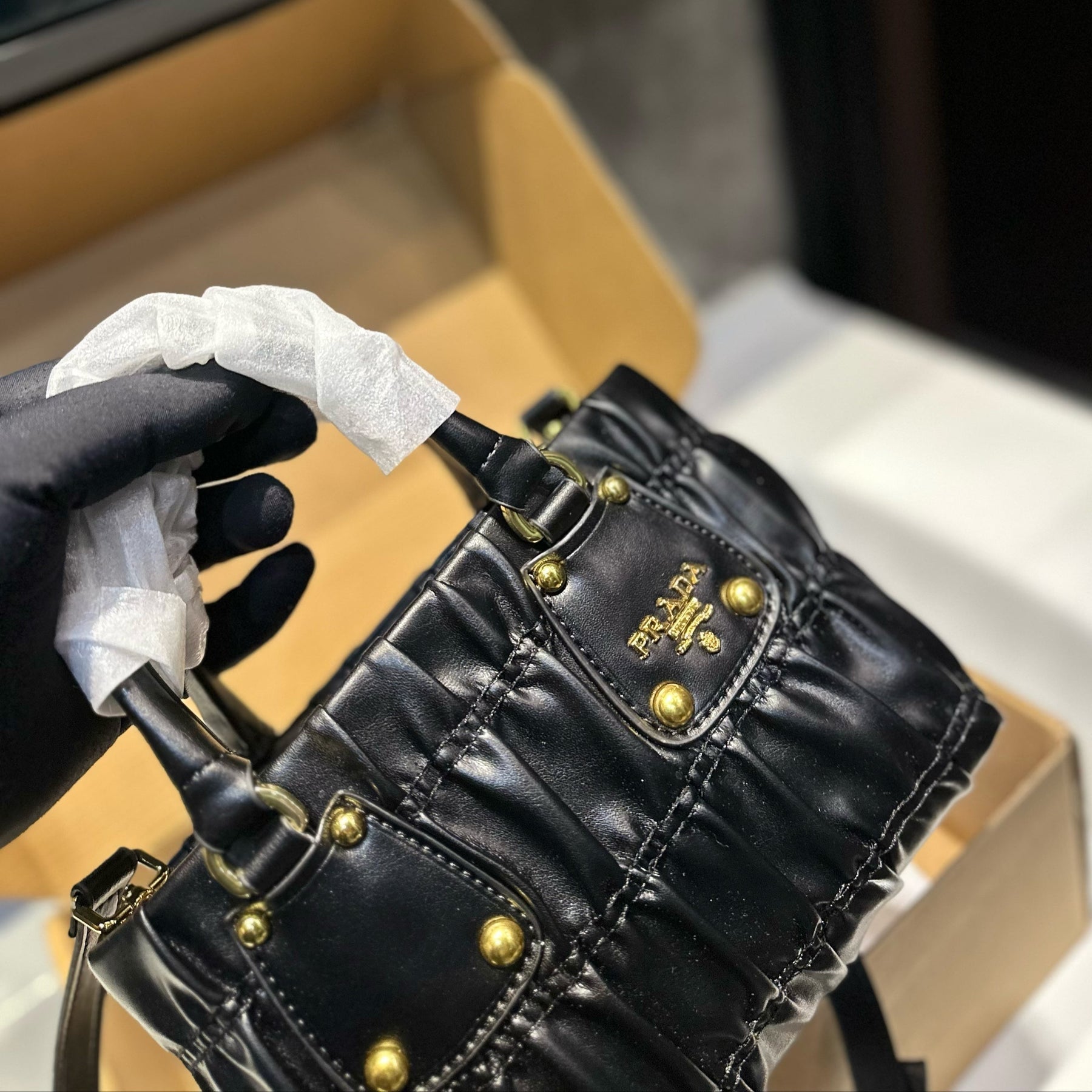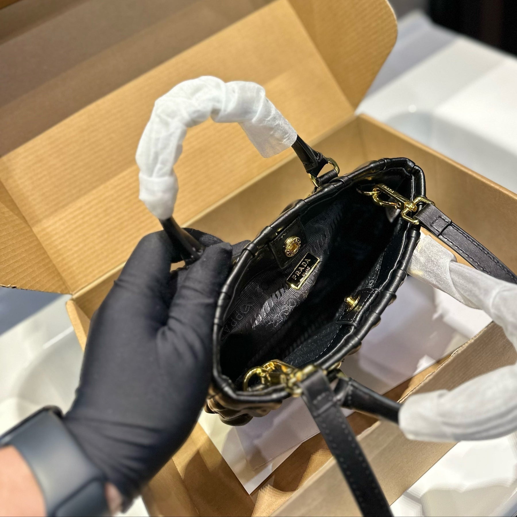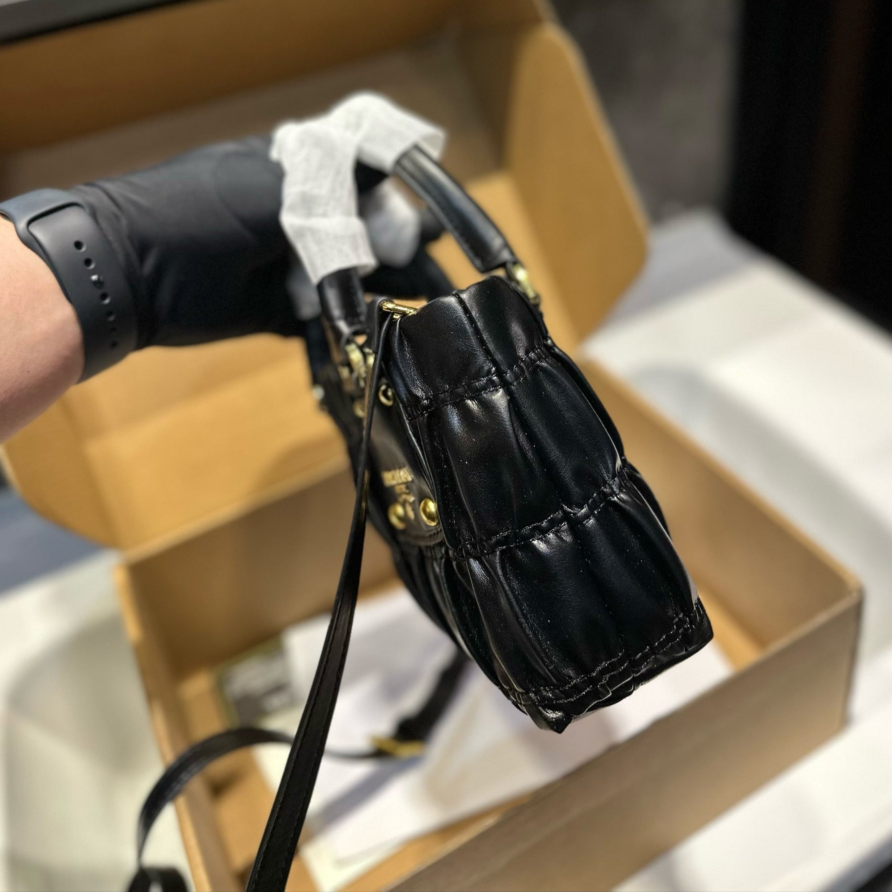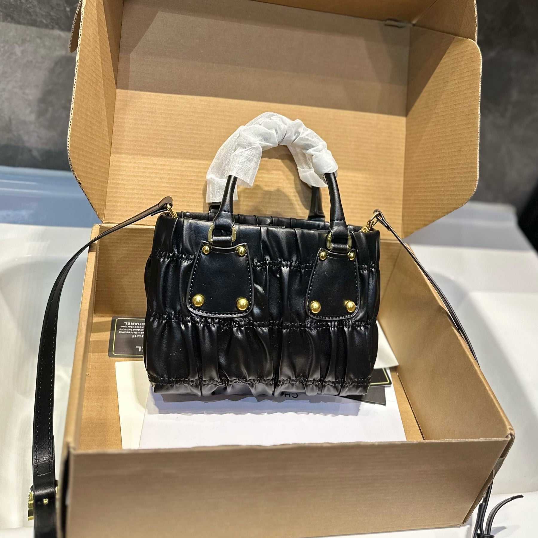 RUCHED TOP HANDLE BAG 19 IN BLACK SAFFIANO LEATHER