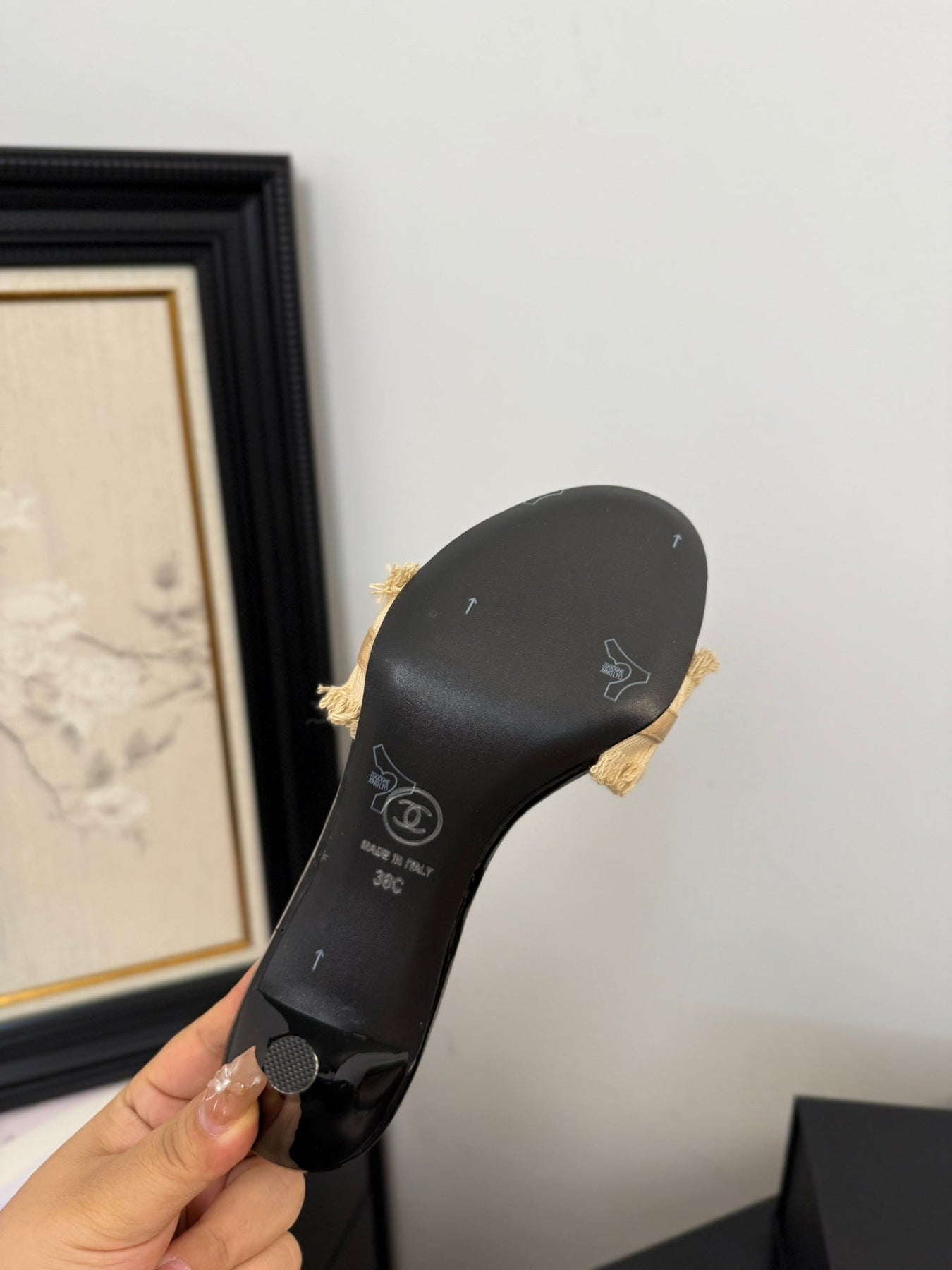 SAND YELLOW GROSGRAIN CANVAS BOW MULE SANDALS 90 MM