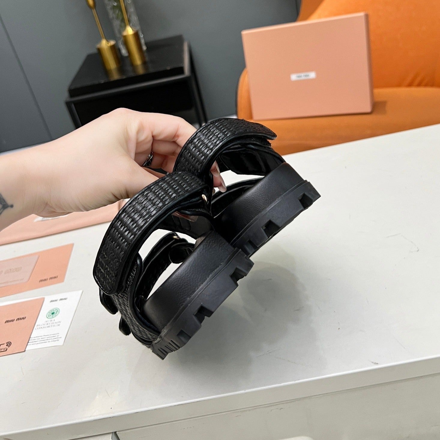 SANDALS BLACK SHEEPSKIN WITH 2 HORIZONTAL STRAPS